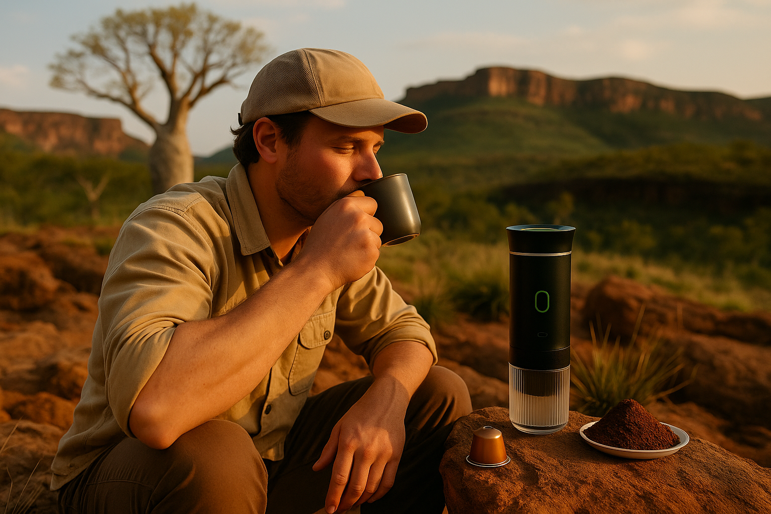 The Espresso Everywhere portable coffee maker is built for adventure – compact, durable, and ready to brew café-quality coffee whether you’re deep in the Kimberley or relaxing in your own backyard